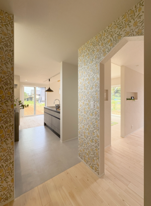 動線は、家族の一日のリズムを丁寧にイメージするように計画。リビングからキッチン、そして収納、水回りへとスムーズな道筋を描きます。